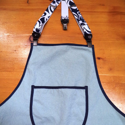 Cotton canvas fabric dye and washed, combined with elastic suspender in 35 mm with, with genuine leather components and metal clip in old silver color. The suspender is detachable to wash the fabric and on the back it can be attached either to the trousers or to the ribbons used to tie the knot at the back. It is possible to create your own combinations by choosing between the colours of the fabric and the different variations of the ribbons for suspenders