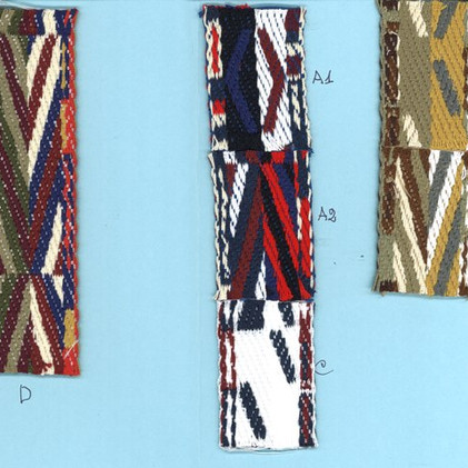 Jacquard with matt loo, made in cotton polyester, with etnic design on both sides of web, softer, possible make fringes effect