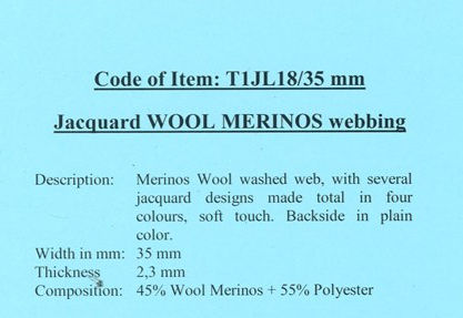 Jacquard web with base in thin wool yarn and designs made in polyester