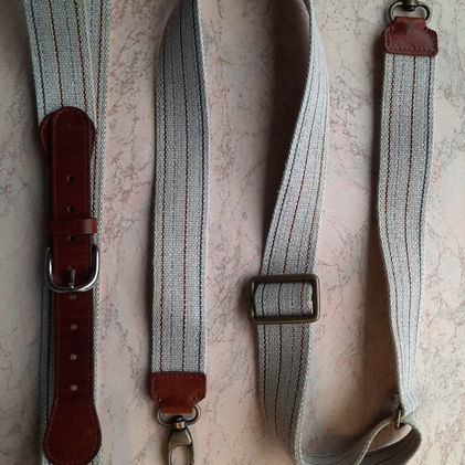 TRT1LL222/40 mm Shoulder strap for bag made with linen ribbon, faded, with lurex yarn stripes of different colors, it is possible to insert or not the leather inserts, as well as choose the color of the plating of the small parts
